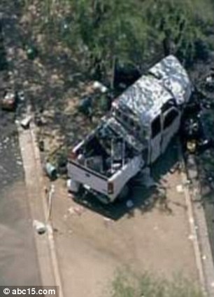 Λίγα λεπτά αργότερα, ο γυμνός οδηγός εισέβαλε με ιλιγγιώδη ταχύτητα στη κεντρική λεωφόρο του Σκοτσντέιλ όπου συγκρούστηκε με τέσσερα αυτοκίνητα προκαλώντας σοβαρούς τραυματισμούς. Στη συνέχεια επιχείρησε να κλέψει δύο ακόμη αυτοκίνητα όταν άκουσε τις σειρήνες των περιπολικών και άρχισε να τρέχει.