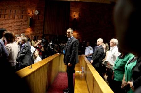 Νωρίτερα, του είχαν απαγγελθεί κατηγορίες για φόνο εκ προμελέτης, ενώ το δικαστήριο δεν αποφάσισε αν τελικά θα αφεθεί ελεύθερος με εγγύηση. Ο εισαγγελέας, σύμφωνα με δημοσίευμα της εφημερίδας «Guardian», κατέληξε στην παραπάνω κατηγορία, καθώς ο αθλητής κατάφερε να πάρει χρόνο με σκοπό να τοποθετήσει τα πρόσθετα πόδια του, να περπατήσει επτά μέτρα από το κρεβάτι του προς το μπάνιο όπου πυροβόλησε το μοντέλο.