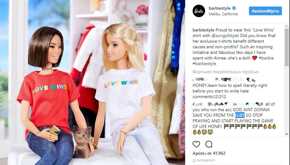 Στο Instagram, μάλιστα, δημοσιεύθηκαν φωτογραφίες με την αγαπημένη κούκλα να φορά ένα T-Shirt με το σύνθημα «Love Wins» (Η Αγάπη Νικά). «Περήφανη που φορώ αυτό το “LoveWins” t- shirt με τη @songofstyle!» αναφέρει η ανάρτηση.