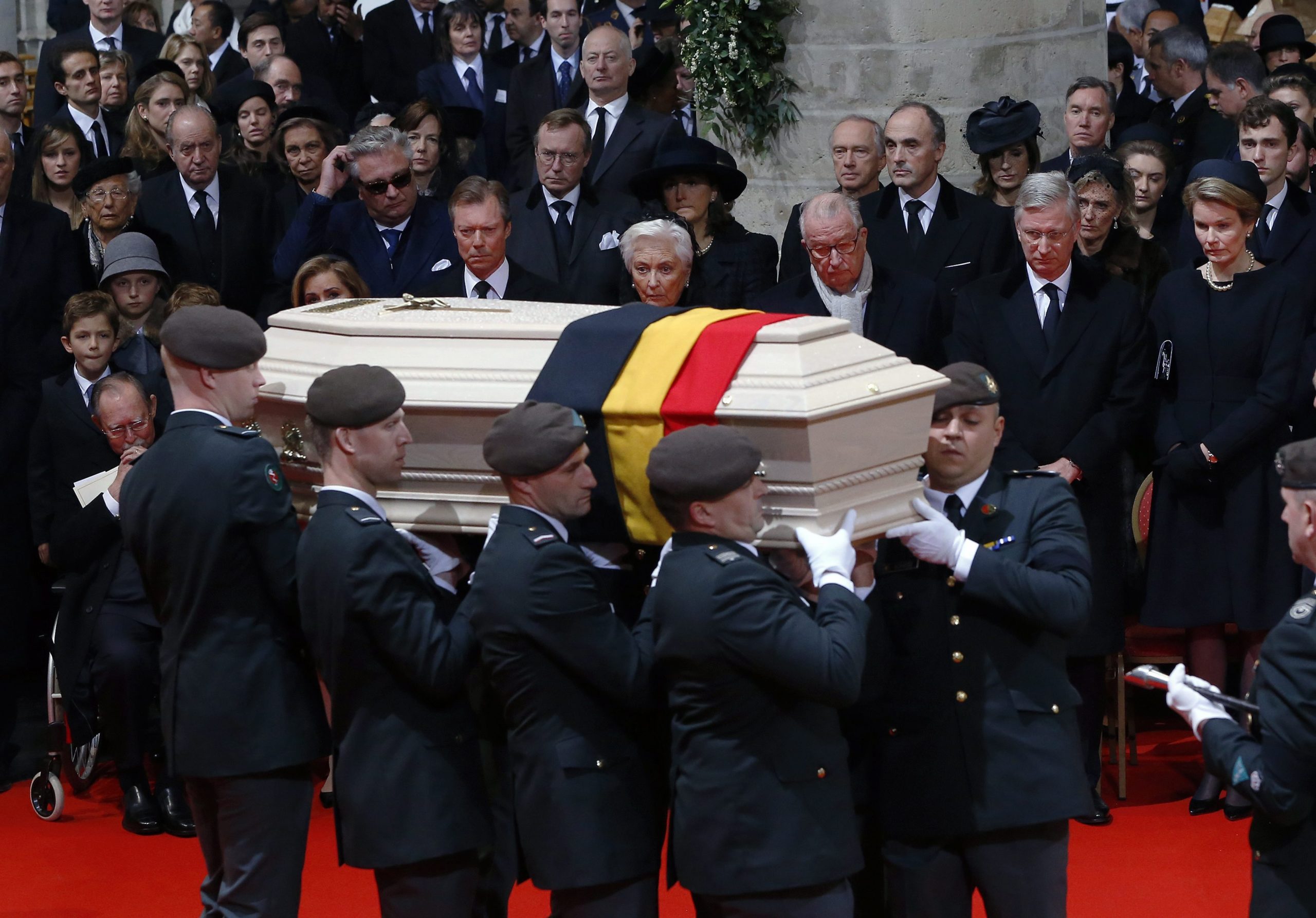 Το φέρετρο από ανοιχτόχρωμη βελανιδιά, πάνω στο οποίο είχε τοποθετηθεί μια μικρή βελγική μαύρη, κίτρινη και κόκκινη σημαία, μεταφέρθηκε μέχρι τη βάση της μεγάλης κλίμακας των ανακτόρων. Το ακολουθούσε η βασιλική οικογένεια, με πρώτα τα τέσσερα νεαρά παιδιά του βασιλιά Φιλίππου και της βασίλισσας Ματθίλδης, ανάμεσά τους και η 13χρονη πριγκίπισσα διάδοχος Ελισάβετ.