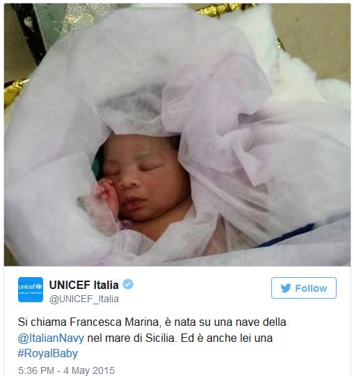 Είναι και εκείνη ένα “βασιλικό” μωρό», έγραφε τότε στο Twitter το ιταλικό παράρτημα της Unicef, καλωσορίζοντας το βρέφος.