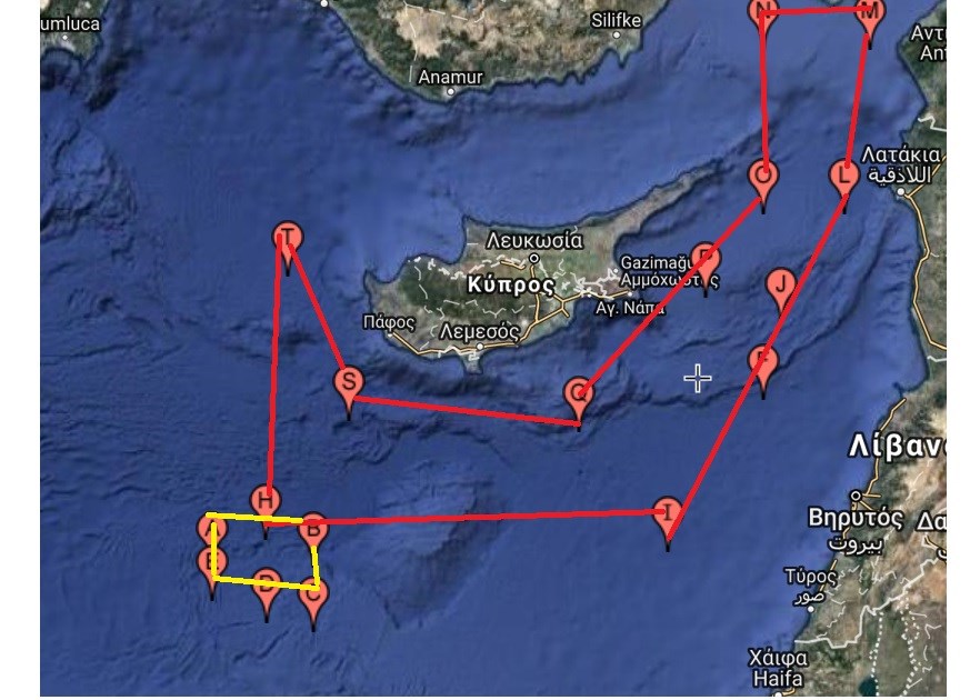 Στην παρακάτω φωτογραφία μπορείτε να δείτε με κίτρινη ένδειξη την περιοχή που έχει δεσμευθεί από την Κυπριακή Δημοκρατία για τη διενέργεια «περιβαλλοντικών ερευνών» από τις 11 Μαρτίου έως τις 20 Απριλίου, εντός του Οικοπέδου 10 της κυπριακής ΑΟΖ.