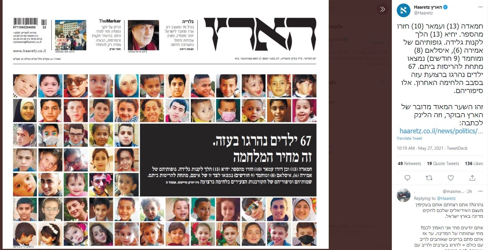 H ισραηλινή εφημερίδα στέλνει ένα συγκλονιστικό μήνυμα με μία πρωτόγνωρη κίνηση που επαινέθηκε από κάποιους χρήστες του twitter, ενώ δέχθηκε κριτική κυρίως από Ισραηλινούς.