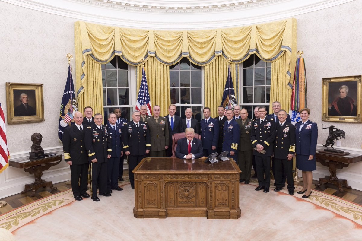 Ο πρόεδρος των ΗΠΑ Ντόναλντ Τραμπ, αφού συζήτησε για το Ιράν και τη Νότια Κορέα με κορυφαία στελέχη των αμερικανικών ενόπλων δυνάμεων την Πέμπτη, πόζαρε για μια φωτογραφία μαζί τους και είπε πως το στιγμιότυπο απαθανατίζει τη “νηνεμία πριν από την καταιγίδα”.