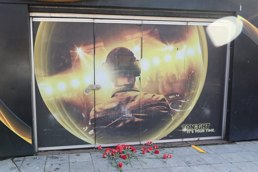 Η αφίσα απεικονίζει έναν dj με την πλάτη στο φακό, να παίζει μουσική με τη λεζάντα να αναφέρει: «Απόψε είναι η ώρα σου». Η φωτογραφία της αφίσας δόθηκε στη δημοσιότητα από το πρακτορείο EPA, όπου κάποιοι έχουν φροντίσει μπροστά της να αφήσουν κόκκινα γαρύφαλλα στη μνήμη των 39 θυμάτων.