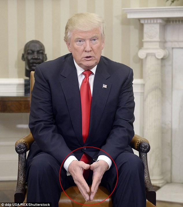 Ο τρόπος που είχε τοποθετήσει τα χέρια του ο Τραμπ, περιγράφεται ως «καθοδική θέση προσευχής», κάτι που δεν είναι συνηθισμένο για έναν νεοεκλεγέντα Πρόεδρο, προσθέτει η Patti Wood και σημειώνει ότι ο Ομπάμα είχε τοποθετήσει τα χέρια του πάνω στα πόδια του κάτι που υποδεικνύει ότι «είναι αρκετά κουρασμένος».