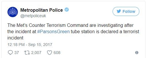Ως τρομοκρατικό συμβάν αντιμετωπίζεται η έκρηξη στο μετρό του Λονδίνου, όπως μετέδωσε το BBC, επικαλούμενο πηγές της αντιτρομοκρατικής υπηρεσίας.