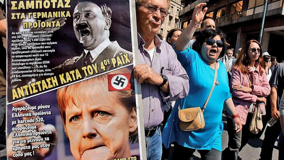 «Όταν η καγκελάριος επισκέφθηκε την Αθήνα τον Οκτώβριο του 2012, δέχθηκε τα ‘χτυπήματα’ τυφλού μίσους, παρότι το προβληματικό κράτος σώθηκε από τη χρεοκοπία χάρη στη βοήθεια δισεκατομμυρίων που έλαβε από τη Γερμανία» σημειώνει η Bild, αναφερόμενη στα «προσβλητικά» όπως τονίζει δημοσιεύματα, του ελληνικού Τύπου, τα «συνθήματα μίσους» που ακούγονταν στους δρόμους εναντίον της Μέρκελ, και τα πλακάτ που την απεικόνιζαν ως Χίτλερ.