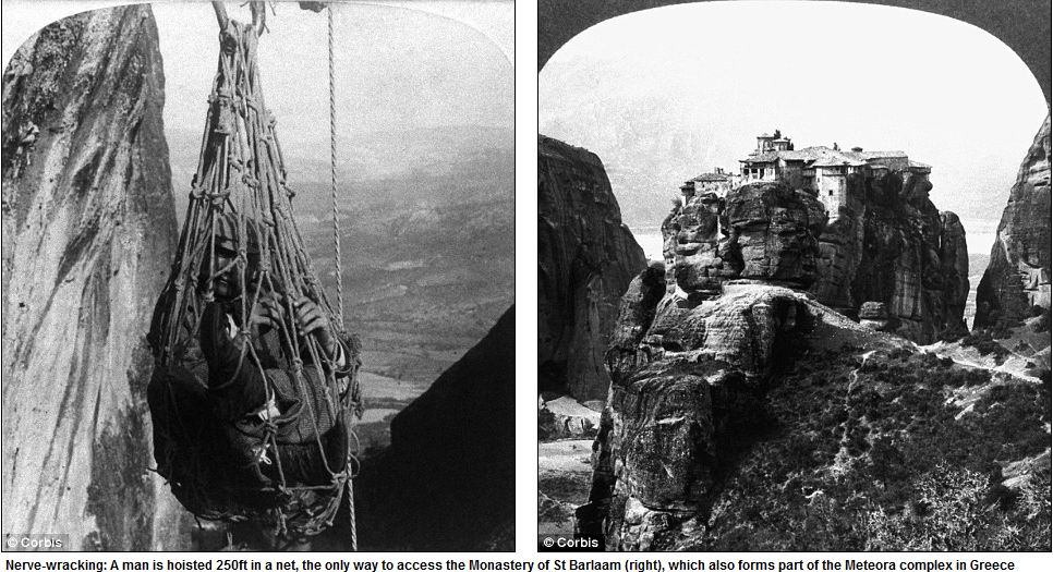 ”Ο μόνος τρόπος που μπορούσε να ανέβει κανείς στο μοναστήρι του Αγίου Βαρλαάμ, στα Μετέωρα”, αναφέρει το δημοσίευμα.