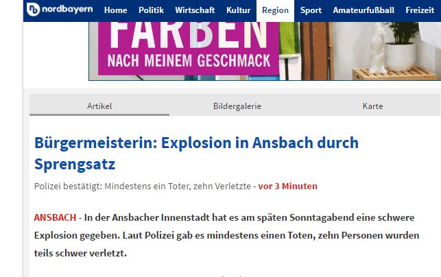 Φαίνεται να αλλάζουν τα δεδομένα στην υπόθεση της έκρηξης σε εστιατόριο του Άνσμπαχ που βρίσκεται 150 χιλιόμετρα βορειοδυτικά του Μονάχου βάσει των όσων δήλωσε πριν από λίγο η δήμαρχος της πόλης.