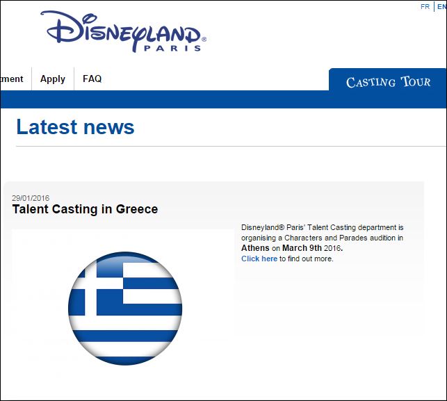 Συγκεκριμένα, η Disneyland ζητά 45 άτομα άνω των 18 ετών(30 γυναίκες και 15 άνδρες)με χορευτικές ικανότητες και άριστη γνώση της αγγλικής ή γαλλικής γλώσσας για να εργαστούν στο Παρίσι.