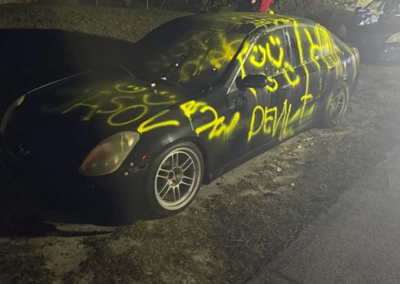 Ίσως την επόμενη φορά να το σκεφτεί πριν ψεκάσει… Μια γυναίκα από τη Φλόριντα κατηγορείται ότι ζωγράφισε με σπρέι ένα αυτοκίνητο που νόμιζε ότι ανήκε στον πρώην σύντροφό της ως μέρος του σχεδίου εκδίκησης για τη διευθέτηση ενός χρέους 1.000 δολαρίων.