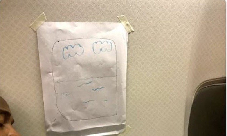 Σαστισμένος απέμεινε ο γκρινιάρης επιβάτης της πτήσης για Ιαπωνία όταν αντί για παράθυρο αντίκρισε ένα χαρτί κολλημένο στο τοίχωμα του αεροσκάφους όπου απεικονιζόταν ένα παράθυρο με θέα τον γαλάζιο ουρανό και τα συννεφάκια.