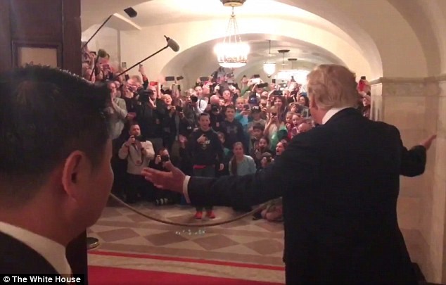 Μια έκπληξη περίμενε μαθητές που επισκέφθηκαν τον Λευκό Οίκο, ο οποίος άνοιξε για πρώτη φορά τις πόρτες του μετά την εκλογή του Ντόναλντ Τραμπ.Κατά τη διάρκεια της ξενάγησής τους και ενώ βρίσκονταν στην ανατολική πλευρά του κτιρίου, είδαν ξαφνικά μπροστά τους τον Αμερικανό Πρόεδρο. Όπως ήταν φυσικό, οι μαθητές ξαφνιάστηκαν και μόλις συνειδητοποίησαν τι είχε γίνει, ξέσπασαν σε χειροκροτήματα.