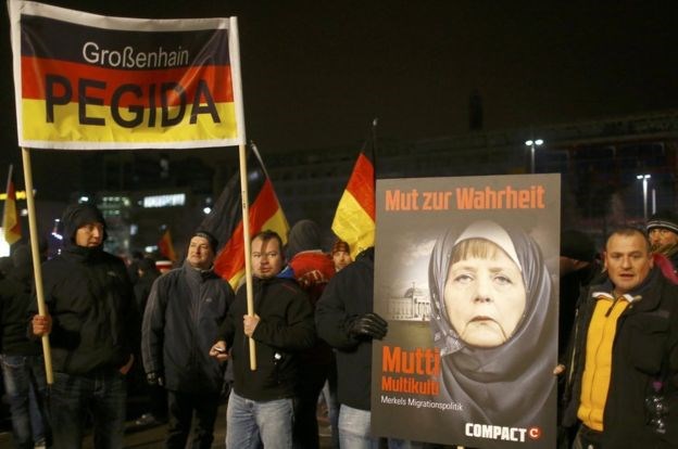 Καθώς το AfD άρχισε να υιοθετεί στοιχεία της ρητορικής του Pegida, όπως για παράδειγμα το σύνθημα «Lügenpresse», το οποίο έχει τις ρίζες του στην εποχή των Ναζί (χρησιμοποιούνταν ως υποτιμητικός πολιτικός όρος για τον Τύπο), τα ποσοστά του κατέγραφαν διαρκή άνοδο.