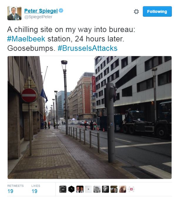 Ο δημοσιογράφος των Financial Times, Πίτερ Σπίγκελ, βρίσκεται στις Βρυξέλλες και πόσταρε στο twitter μία φωτογραφία από τον σταθμό του μετρό της περιοχής Μααλμπέκ, όπου έγινε χθες το τρομοκρατικό χτύπημα.
