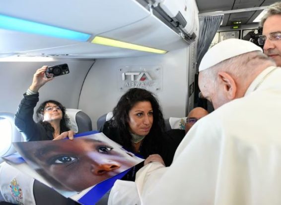 Pope Francis was moved as he was shown a picture of a migrant child by @Reuters photographer @y_nardi during his flight to a Church conference on Mediterranean issues in Marseilles, France https://t.co/wveDkZKkle