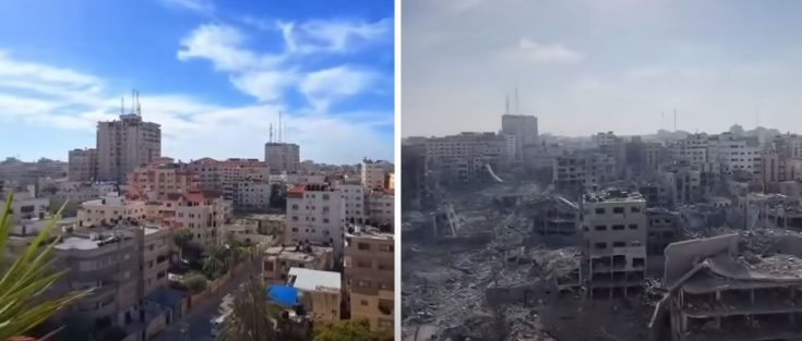 Ένα συγκλονιστικό βίντεο δημοσίευσε η βρετανική εφημερίδα The Guardian, στο οποίο αποτυπώνεται το μέγεθος της καταστροφής στην Γάζα, πριν και μετά τον πόλεμο στην Μέση Ανατολή.