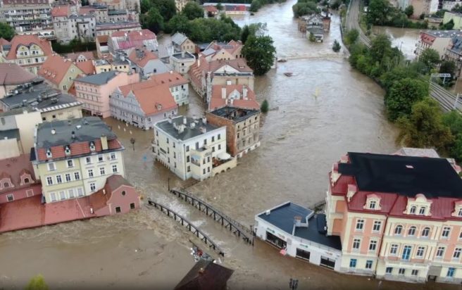 Οι συνοριακές περιοχές μεταξύ της Τσεχικής Δημοκρατίας και της Πολωνίας επλήγησαν σκληρά το Σαββατοκύριακο καθώς η ισχυρή βροχόπτωση που έπεσε από την περασμένη εβδομάδα και η άνοδος της στάθμης του νερού προκάλεσαν την κατάρρευση γεφυρών, την εκκένωση γειτονιών και την καταστροφή αυτοκινήτων και σπιτιών.
