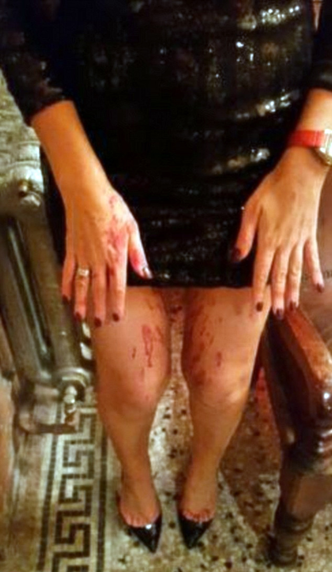 «Λουσμένη» με αίμα στο πηγούνι και στα πόδια φωτογράφησαν την αγγλίδα τηλεπερσόνα, Μαρία Φάουλερ, στο Ντέρμπι της Αγγλίας…