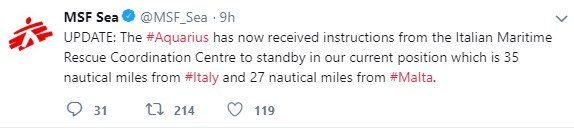 Η Μαλτέζικη κυβέρνηση, ανέφεραν οι υπουργοί της ιταλικής κυβέρνησης στην ανακοίνωση, «δεν μπορεί να συνεχίσει να κοιτάει αλλού όταν πρόκειται για τον σεβασμό συγκεκριμένων διεθνών συμβάσεων για την προστασία της ανθρώπινης ζωής» και «για αυτό απαιτούμε από την κυβέρνηση της Βαλέτας να υποδεχθεί το Aquarius προκειμένου να προσφερθούν οι πρώτες βοήθειες στους μετανάστες που επιβαίνουν σε αυτό».