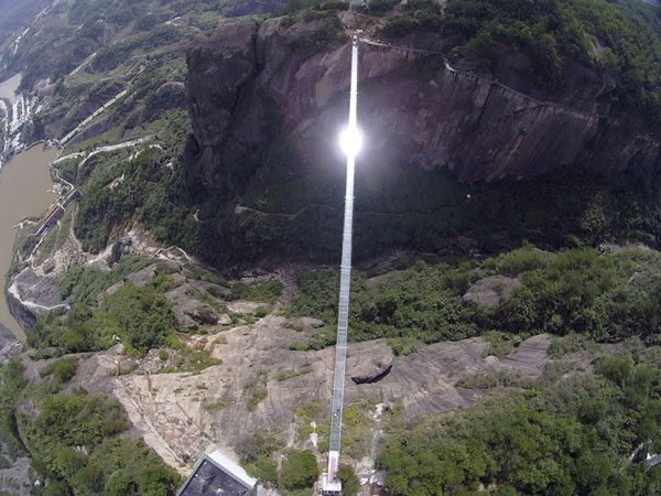 Το πάτωμα είναι φτιαγμένο από διπλή στρώση γυαλιού πάχους 24 χιλιοστών και λέγεται ότι είναι 25 φορές πιο ισχυρή από ό,τι ένα κλασικό γυάλινο παράθυρο.