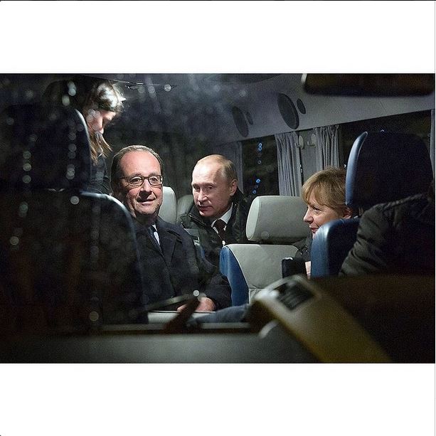 Ανάμεσα στις φωτογραφίες διακρίνονται ο Πάπας Φραγκίσκος, ο Ολάντ και ο Πούτιν.