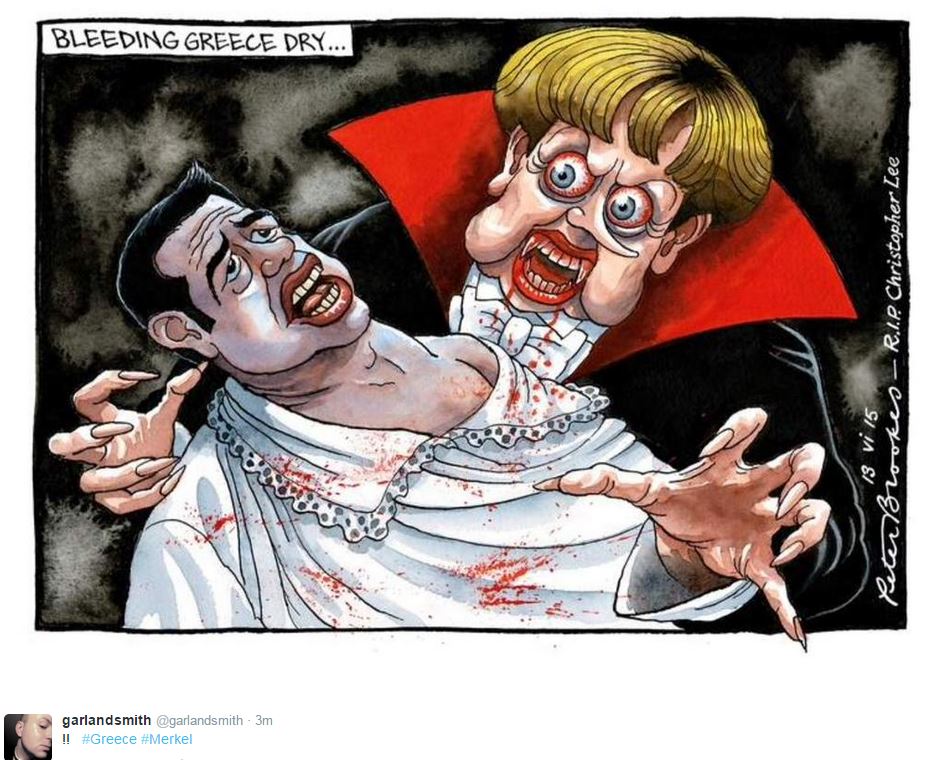 Η Μέρκελ «πίνει» το αίμα του Τσίπρα – Το σκίτσο που έγινε viral – ΦΩΤΟ