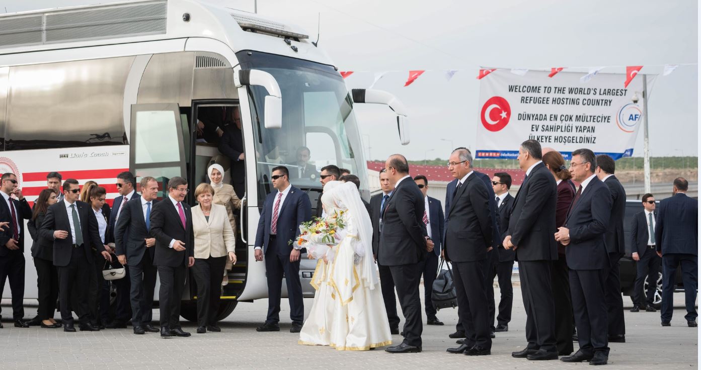 Η Άνγκελα Μέρκελ μαζί με τον Πρόεδρο του Ευρωπαϊκού Συμβουλίου Ντόναλντ Τουσκ, τον αντιπρόεδρο της Κομισιόν Φρανς Τίμερμανς και τον Τούρκο Πρωθυπουργό Αχμέτ Νταβούτογλου επισκέφτηκε τον προσφυγικό καταυλισμό Νιτσίπ στην Γκαζιαντέπ.