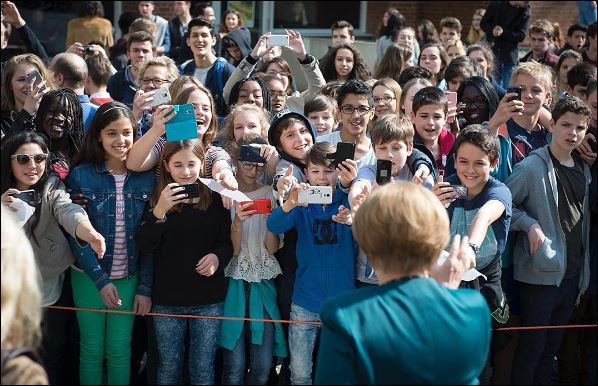 Η Άνγκελα Μέρκελ το τελευταίο διάστημα επισκέπτεται σχολεία στη Γερμανία, με αφορμή τον επικείμενο εορτασμό της «Ημέρας της Ευρώπης», στις 9 Μαΐου.