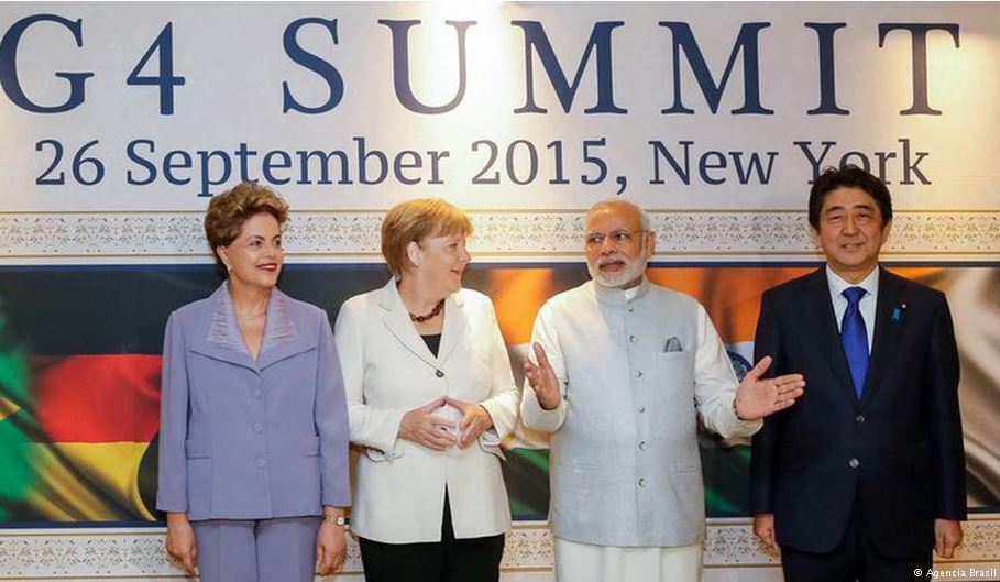Επ΄ αυτού η καγκελάριος είχε συνομιλίες με την πρόεδρο της Βραζιλίας Ντίλμα Ρούσεφ, και τους πρωθυπουργούς της Ιαπωνίας Σίνζο Άμπε και της Ινδίας Ναρέντρα Μόντι, με τους οποίους αντάλλαξε απόψεις για τις κωλυσιεργίες στις μεταρρυθμιστικές προσπάθειες του διεθνούς οργανισμού. Και οι τέσσερις χώρες αλληλοϋποστηρίζονται στον κοινό στόχο να εισέλθουν στο κλαμπ των ισχυρών αυτού του κόσμου καταλαμβάνοντας μόνιμη θέση στο Συμβούλιο Ασφαλείας. Μετά τη συνάντηση Μέρκελ, Ρουσέφ, Άμπο και Μόντι δήλωσαν ότι «ένα πιο αντιπροσωπευτικό, πιο νομιμοποιημένο και πιο αποτελεσματικό Συμβούλιο Ασφαλείας χρειάζεται περισσότερο από ποτέ για να ανταποκριθεί στις παγκόσμιες κρίσεις και διενέξεις που έχουν κλιμακωθεί τα τελευταία χρόνια».