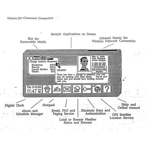 O Nathan Muhrvold δημιούργησε το συγκεκριμένο σχέδιο το 1991 και όπως βλέπετε το design του λειτουργικού θυμίζει αρκετά τα λειτουργικά που υπάρχουν σήμερα στα smartphone.Δυστυχώς η Microsoft δεν προχώρησε στη υλοποίηση της ιδέας εξαιτίας του κόστους παραγωγής.