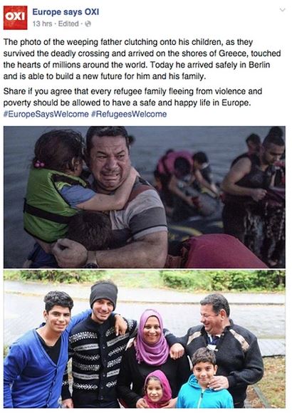 Η σελίδα “Europe says OXI” στο facebook δημοσίευσε μια νέα φωτογραφία της οικογένειας από τη Γερμανία η οποία έρχεται σε πλήρη αντίθεση με την αρχική εικόνα. Το χαμόγελο έχει πλέον επιστρέψει στα χείλη τους.