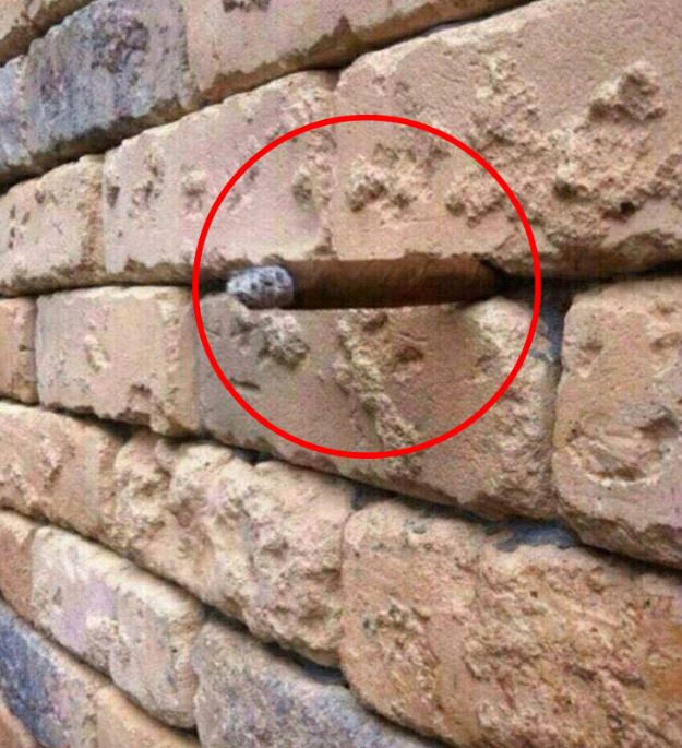 Η πρώτη εντύπωση είναι ότι ανάμεσα στα τούβλα κρύβεται μια μικρή πέτρα.