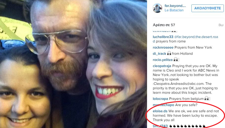 Μία οικογένεια, ένας πατέρας με τις δύο του κόρες, βρέθηκε στο συναυλιακό κέντρο του Bataclan, ωστόσο κατάφεραν να σωθούν.