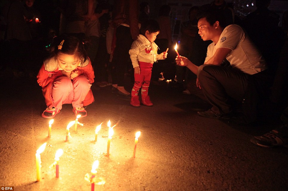 Μικρά παιδιά γέμισαν την πλατεία στο Βιετνάμ, με κεριά στα χέρια θαυμάζοντας την σκοτεινή πόλη. Πηγή: dailymail.co.uk