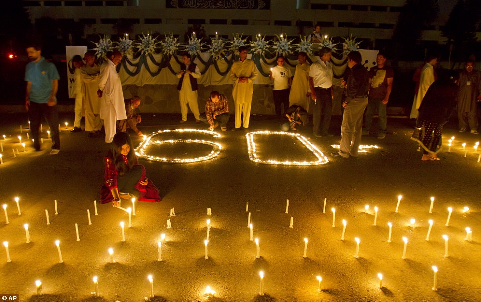 Στο Πακιστάν, οι συμμετέχοντες άναψαν κεριά για 60 λεπτά, κατά τη διάρκεια της τελετής που διοργανώθηκε.