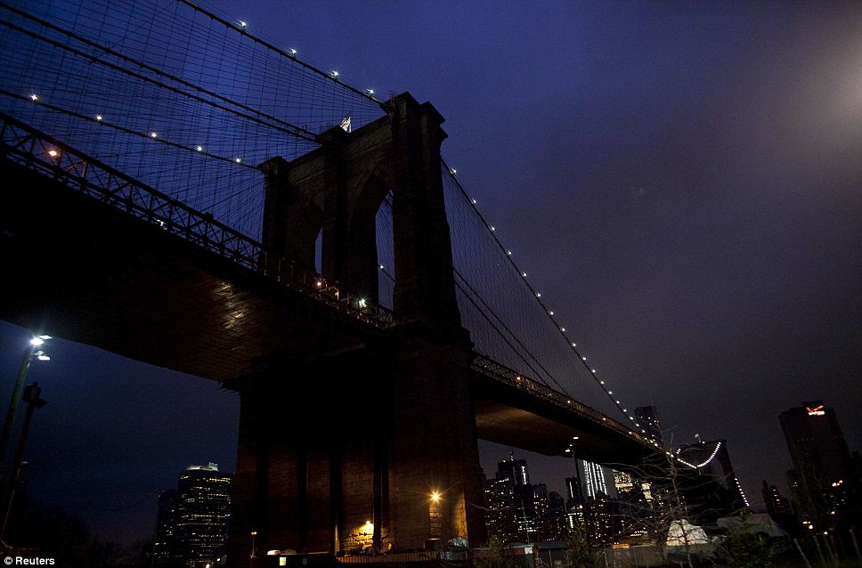 Η γέφυρα του Μπρούκλιν, γιορτάζει την ώρα της γης, όπως όλη η Νέα Υόρκη.