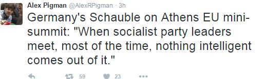 «Όταν σοσιαλιστές ηγέτες συναντώνται μεταξύ τους, τις περισσότερος φορές, δεν προκύπτει κάτι έξυπνο», απάντησε, σύμφωνα με τον δημοσιογράφο του γαλλικού πρακτορείου ειδήσεων στις Βρυξέλλες.