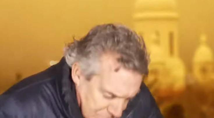Τα πλάνα δείχνουν μια λάμψη λευκού φωτός που στη συνέχεια έγινε πορτοκαλί στο φόντο της πόλης ακριβώς πίσω από τον δημοσιογράφο.