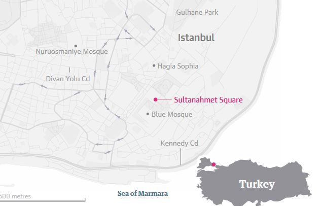 Τουλάχιστον 10 άνθρωποι έχασαν τη ζωή τους και άλλοι 15 έχουν τραυματιστεί από την ισχυρή έκρηξη που σημειώθηκε στην πλατεία Σουλτάν Αχμέτ, στο κέντρο της Κωνσταντινούπολης, σε ένα από τα πιο τουριστικά σημεία της πόλης, κοντά στο Μπλε Τζαμί και την Αγιά Σοφιά.