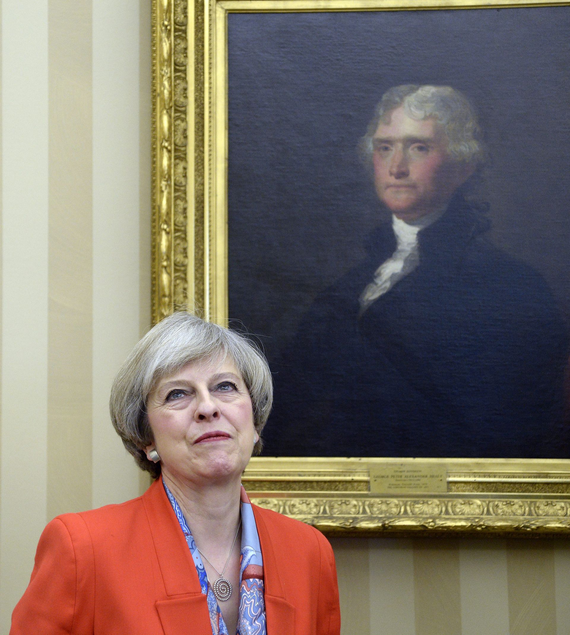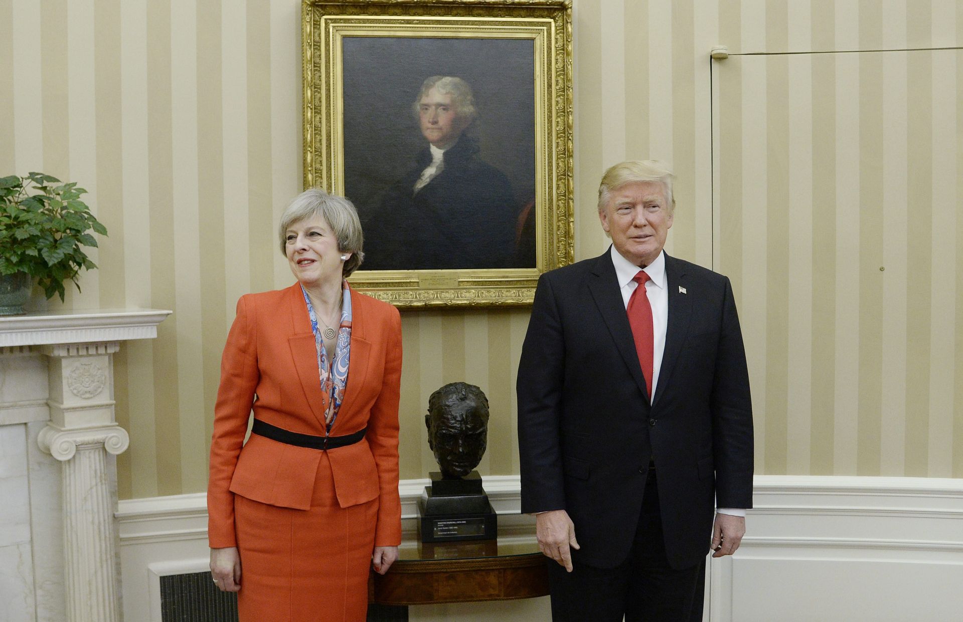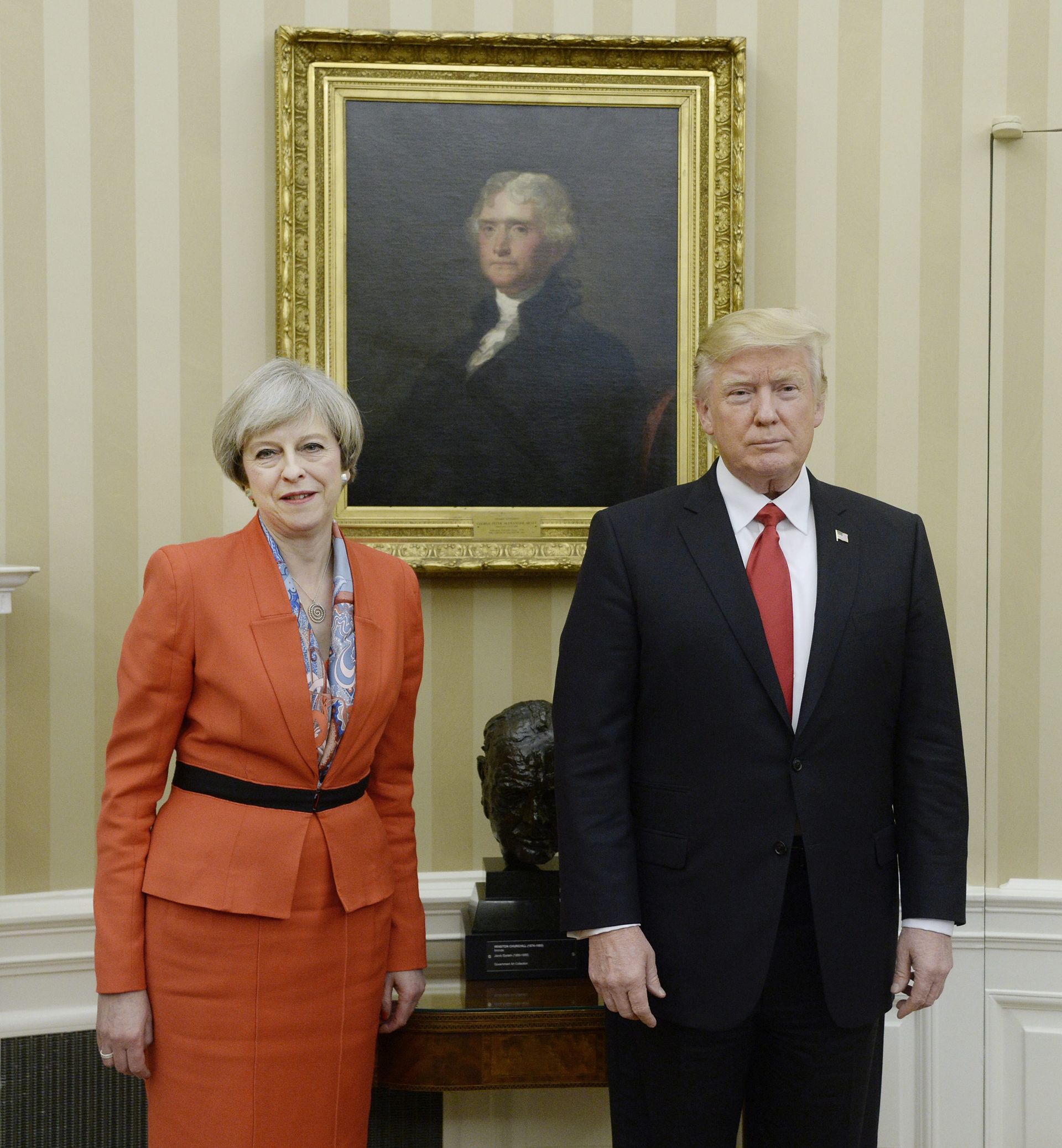 Η Μέι, η πρώτη ξένη ηγέτιδα που συναντιέται με τον νέο Ρεπουμπλικανό πρόεδρο, έγινε δεκτή από τον ίδιο τον Τραμπ αυτοπροσώπως.