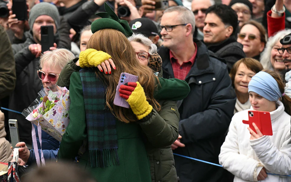 Η βασιλική οικογένεια χαιρέτισε το πλήθος που είχε συγκεντρωθεί για να τους δει από κοντά, με μερικούς να έχουν ταξιδέψει περισσότερα από 4 χιλιάδες μίλα μακριά.