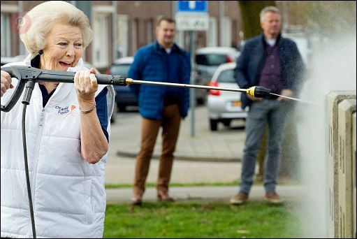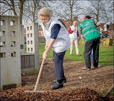 Η βασίλισσα της Ολλανδίας Βεατρίκη με την τσουγκράνα στο χέρι καθαρίζει το έδαφος σε μια παιδική χαρά. Όπως είναι φυσικό, ούτε η βασίλισσα ούτε τα άλλα μέλη της βασιλικής οικογένειας που φόρεσαν τη στολή εργασίας το Σάββατο ήταν αναγκασμένοι να το κάνουν.Ήθελαν ωστόσο να δώσουν το καλό παράδειγμα στους πολίτες της χώρας, στο πλαίσιο ενός εθνικού προγράμματος, που στόχο έχει να ευαισθητοποιήσει την κοινή γνώμη στην αξία του εθελοντισμού στην καθημερινότητα.Πηγή φωτο: theroyalforums.com