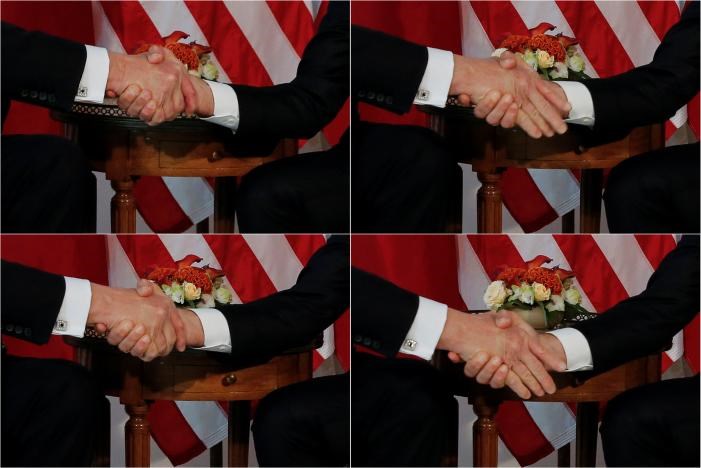 Η χειραψία, ήταν τόσο δυνατή που, όπως σχολιάζει το Reuters, οι αρθρώσεις τους άσπρισαν και τα σαγόνια τους σφίχτηκαν.