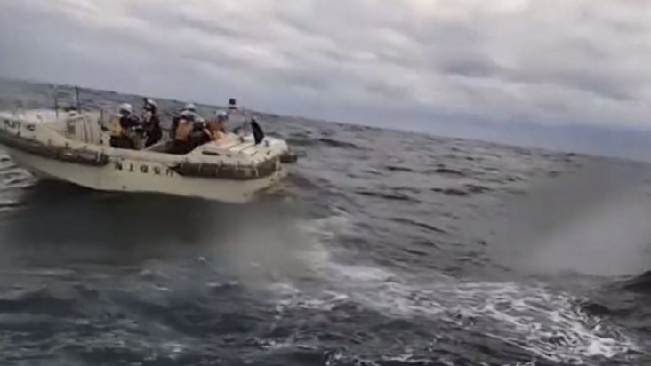 Σκάφη του λιμενικού της Ιαπωνίας σπεύδουν στην περιοχή, ενώ παραπλέοντα σκάφη προσφέρουν βοήθεια.