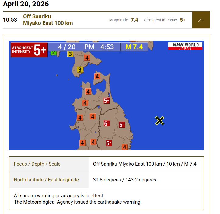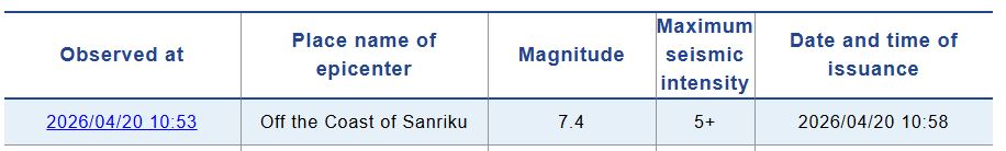 Σύμφωνα με την τελευταία ενημέρωση από τη Μετεωρολογική Υπηρεσία (JMA) της χώρας, ο χρόνος αντίδρασης για τους κατοίκους των παράκτιων περιοχών είναι εξαιρετικά περιορισμένος.