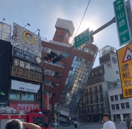 Πλάνα που μεταδίδουν τηλεοπτικά δίκτυα της Ταϊβάν εικονίζουν κτίρια που πήραν επικίνδυνη κλίση, ειδικά στην αραιοκατοικημένη κομητεία Χουάλιεν, στο ανατολικό τμήμα της χώρας.