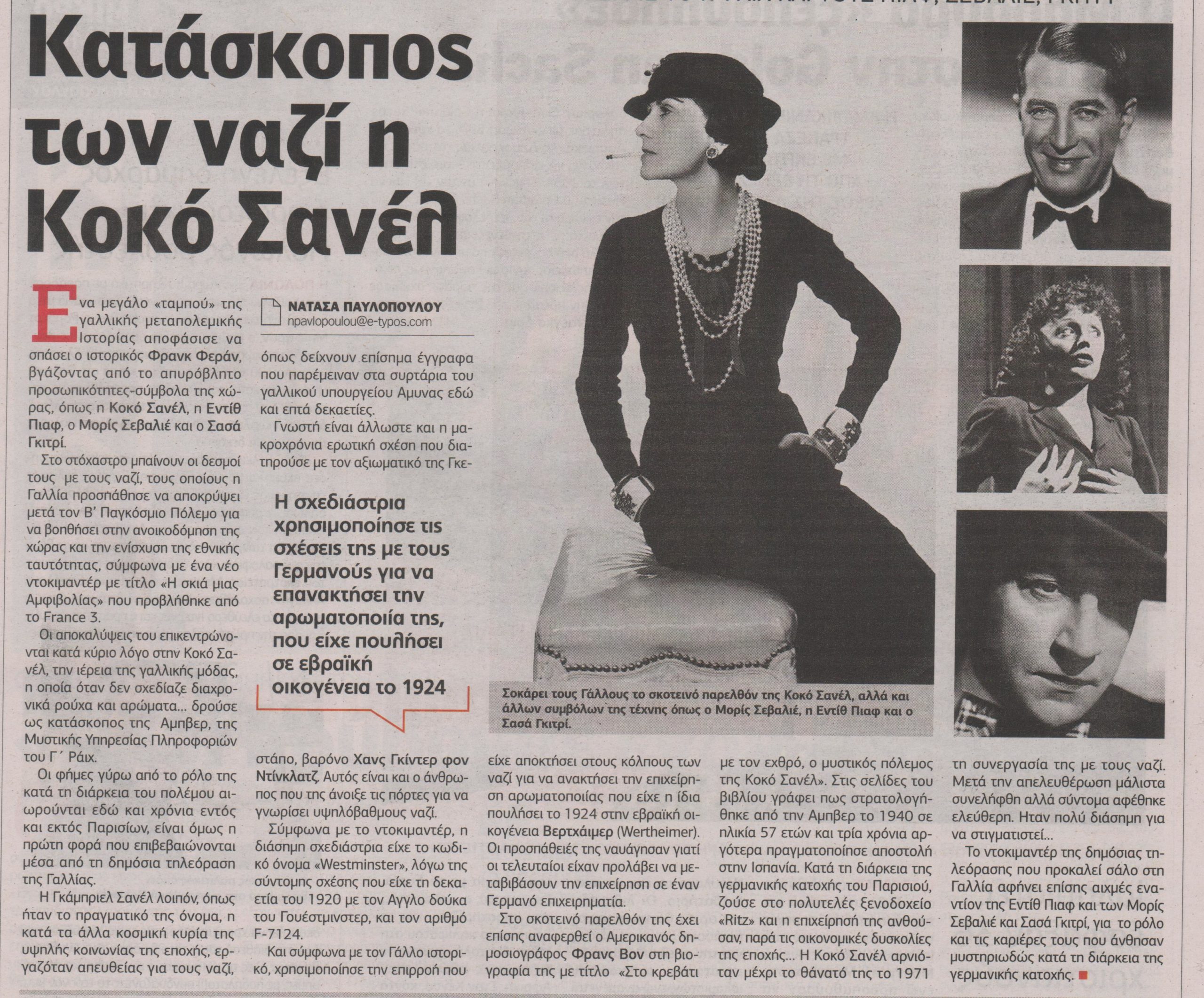 Οι αποκαλύψεις του επικεντρώνονται κατά κύριο λόγο στην Κοκό Σανέλ, την ιέρεια της γαλλικής μόδας, η οποία όταν δεν σχεδίαζε διαχρονικά ρούχα και αρώματα…δρούσε ως κατάσκοπος της Αμπβερ, της Μυστικής Υπηρεσίας Πληροφοριών του Γ΄ Ράιχ.
