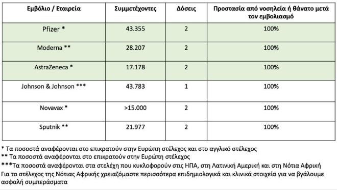 Αυτά τα εμβόλια είναι 100% αποτελεσματικά όσον αφορά την προστασία που μας παρέχουν από την νοσηλεία εάν κολλήσουμε (το επικρατούν στέλεχος στην Ευρώπη ή την παραλλαγή που κυκλοφορεί κυρίως στην Αγγλία) αφού εμβολιαστούμε.